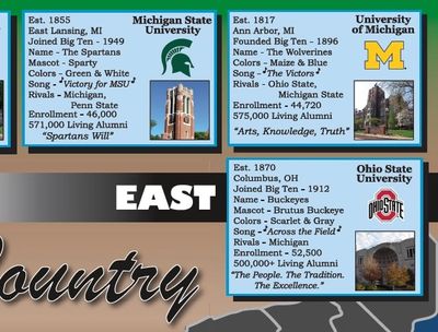 These "fun facts" which are positioned on the Map by the East and West B1G Football Divisions, reflect all the great traditions, rivalries and history that make the Big Ten the premier collegiate conference in the country.